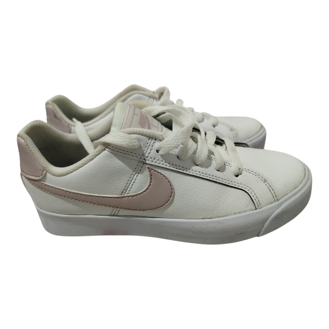 Cores: Branco predominante (material sintético liso) com detalhes em Rosa Claro / Rosa Bebê